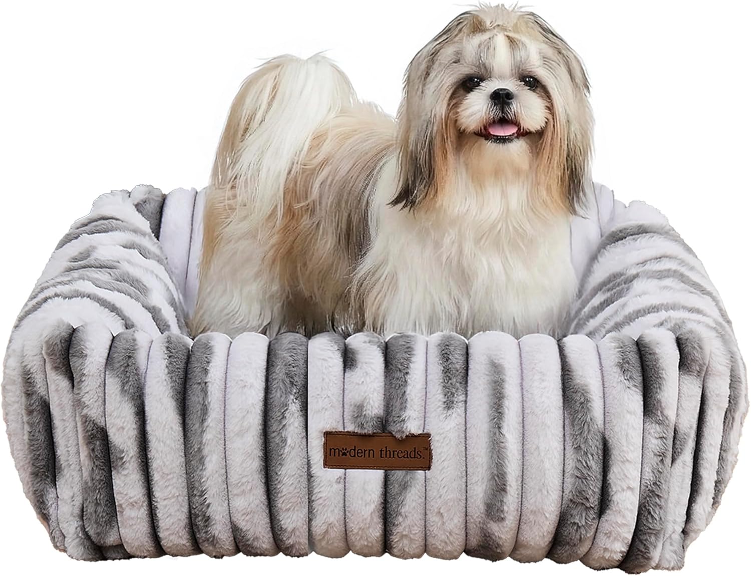 The Modern Threads Ultra-Soft Plush Cuddler Pet Bed is designed to give your pet a cozy, secure place to rest and relax. Wrapped in luxuriously soft plush faux fur, this bed provides gentle warmth and a calming feel that helps pets feel safe and comfortable throughout the day and night. The cushioned sleeping surface is paired with thick, padded bolstered sides that support proper neck and spine alignment while creating a nest-like space pets love to curl up in. Perfect for small to large dogs and available in multiple sizes, this cuddler bed fits effortlessly in bedrooms, living rooms, crates, or quiet corners of the home. The durable construction helps the bed maintain its shape over time, ensuring lasting comfort and support. Designed with everyday convenience in mind, the removable zippered cover and interior padding are machine washable, making it easy to keep your pet’s bed clean, fresh, and ready for daily use. With its elegant textured design and thoughtful comfort features, the Modern Threads plush pet bed blends seamlessly into your home while giving your pet a relaxing space they’ll return to again and again.