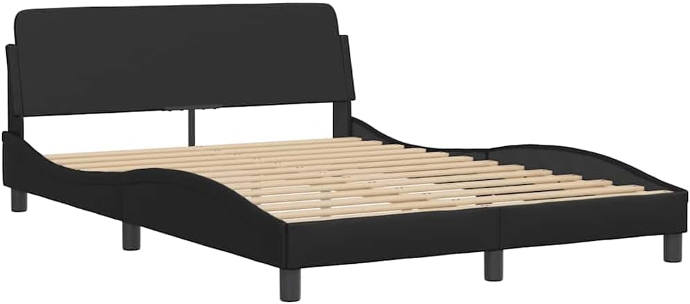 Get a better restful night's sleep from this bed frame with headboard! It makes a welcoming addition to any bedroom.Durable faux leather: Premium faux leather is a highly durable material. It is resistant to stain, making it easy to clean with a damp cloth. The smooth surface also gives a luxurious look and the beauty of real leather.Supportive legs: The bed is supported by sturdy legs, which ensure its stability, safety and firmness.Plywood slats: The plywood slats provide good weight distribution, ensuring that the mattress stays in place with every twist and turn of your body during sleep.Excellent support: The bed header provides you with excellent back support while you're sitting up in bed to read or watch TV.Waved side design: The waved look of the bed frame is stylish and sophisticated, adding a modern and elegant touch to your decor, making it the focal point of your bedroom.Good to know:A mattress is not included with this bed. We do offer a various selection of mattresses. You can check our shop for a matching mattress.Color: BlackMaterial: Faux leather (75% polyvinylchloride, 5% cotton, 20% polyester), metal, solid pine wood, plywoodOverall dimensions: 85.8" x 78" x 29.3" (L x W x H)Suitable mattress size: 76" x 79.9" (W x L) King (mattress not included)Assembly required: YesCalifornia Proposition 65