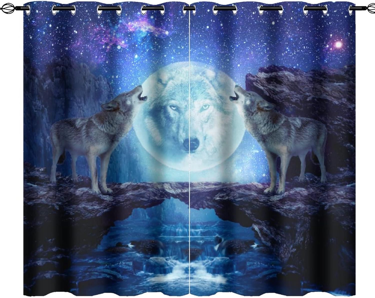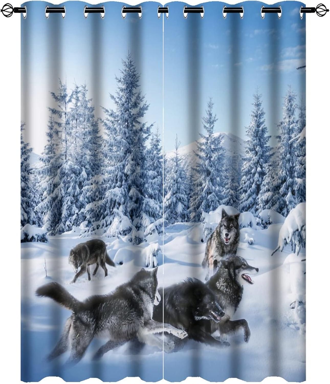 INSFBRB Winter Snow Wildlife Wolf Patterned Blackout CurtainsThis Winter Snow Wildlife Wolf Curtains liven up your indoor or outdoor spaces with a sense of airiness and beauty.Workmanship & Design:Each curtain is machine-made and neatly sewn with no loose threads. Soft, high-quality fabrics ensure long-lasting durability.Beautiful patterns, clever colour matching and advanced printing and dyeing processes for vibrant, fade-free colours.This Abstract Forest Mountain Oil Painting Grey Wolves Family Curtains is suitable for: living rooms, bedrooms, boys' rooms, girls' rooms, nurseries, dining rooms, offices, dormitories, window sills, etc.Care instructions.Machine wash in cold water or hand wash, do not bleach, iron at low temperature.Customer service.24 Hours customer support.